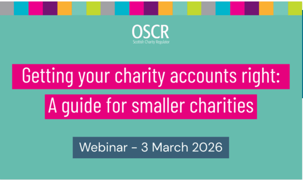 The session will also cover important upcoming changes to how accounts are published on the Scottish Charity Register, including the move to publishing full, unredacted accounts from early 2026.
